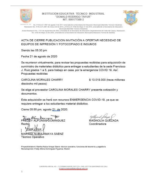 PUBLICACIÓN 42INVITACIÓN A OFERTAR MATERIALES Y SUMINISTROS DE PAPELERÍA Y MATERIAL DIDACTICO PARA ACTIVIDADES PEDAGÓGICAS